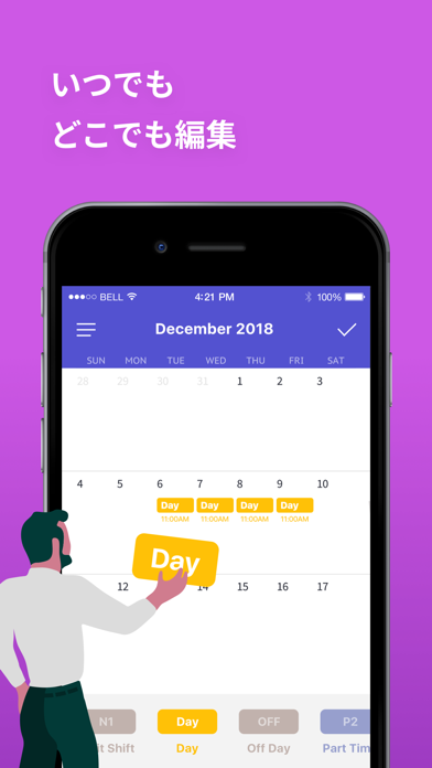 シフト予定の管理が超カンタンに! シフトデイズを使えば、自分の出勤予定をいつでもすばやく把握できます。 iPhone および iPad 上で、クリアで見やすいカレンダーを使って出勤予定をストレスフリーで管理できます。シフトの追加/削除もシングルタップで簡単。 シフトワーカーのために作られたこの「シフトデイズ」では、画面上にその月の勤務予定を見やすく一覧することができるため、スケジュールの管理もストレスフリーに。 主な特長: - シフトを色分けしたり、短い名前を付けたりして分かりやすく管理 - 直感的なインターフェイスでローテーションを簡単管理 - 各日イベントのクイックリマインダーとして複数のメモを追加可能 - シフトウィジェットを使えば、今後のシフト予定をアプリを開かずに確認可能 - スケジュールを友達や家族と簡単に共有 - iCloud で iPad と iPhone 間のデータをリアルタイム同期 その他のメリット: - 1 日につき 2 件までのシフトを表示 - カレンダーにシフトを無制限で追加可能。 - カレンダーをタップするだけでシフト予定をすばやく変更。 - シフトはコピーアンドペーストで毎日すばやく更新 - 簡単操作でローテーションを追加し、カレンダーに自動記入 - シフト予定はプッシュ通知でお知らせ。 - 週番号は 4 パターン (1-2、2-1、1-52、0-51)。 - 任意の曜日を週はじめとして設定可能。 - シフト予定をメールで送信。 - 毎月のシフト表を共有 (メール/SMS/印刷/フォトアルバム)。 直感的なインターフェイスを備えたシフトデイズは、シフトスケジュール管理の煩わしさを解消したいすべてのユーザーに適したアプリです。 このアプリは、不規則な時間・曜日で勤務している人や、交代制で働いている人のシフト管理に最適です。 様々な職業の方々が、シフトデイズを活用しています: - 看護師 - 医師 - 救急隊員 - 警察官 - 消防士 - 自衛官 - 救急救命士 - 警備員 - 清掃員 - バーテンダー - レポーター - 学生/アルバイト - タクシー/Uber ドライバー - ウェイター/ウェイトレス - トラック運転手 - 建設労働者 - 夜警 ---- SUBSCRIPTION PRICING & TERMS Shift Days is free to download. Shift Days Subscription gives you unlimited access to our premium content and features. - Shift Days's auto-renewing subscription options are $2.99 monthly or $24.99 annually - This price is for United States customers. Pricing in other countries may vary, and actual charges may be converted to your local currency depending on the country of residence. - Payment will be charged to your iTunes Account at confirmation of your subscription - Subscription automatically renews unless auto-renew is turned off at least 24-hours before the end of the current period - The account will be charged for renewal within 24-hours prior to the end of the current period, and at the cost of the chosen package - Any unused portion of a free trial period, if offered, will be forfeited when the user purchases a subscription to that publication, where applicable. - Your subscription automatically renews unless you turn if off in Account Settings 24+ hours before the end of the billing period. - You can turn off auto-renew at any time from your iTunes account settings, but refunds will not be provided for any unused portion of the term. [ Privacy Policy ] https://www.iubenda.com/privacy-policy/77398254 [ Terms of Service ] https://www.iubenda.com/terms-and-conditions/77398254 [ Support ] Contact at 'support@pixo.co'
