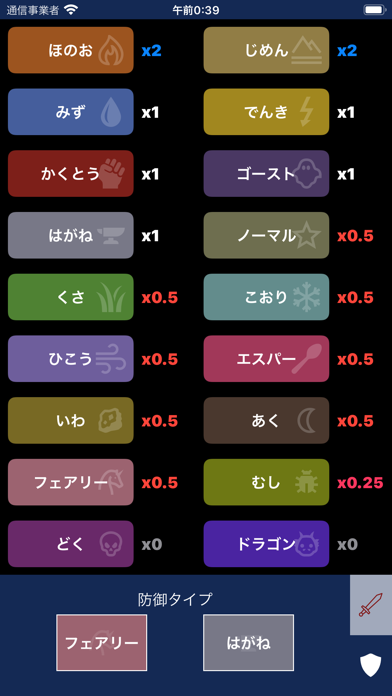 ポケモンのタイプ別、相性判断アプリ。どの攻撃がどのタイプに有効か、またどの防御がどの攻撃に強いか、判定できるアプリ。ぜひ、対戦のお供に!