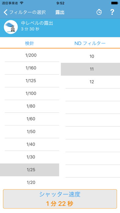 毎回、適切なNDフィルターを選択していただけます – 使い方は簡単! この長時間露光計算機が、自動的に適切な設定を選択いたします。あなたは写真のタイプを選択するだけ – 例えば、ぼやけた雲や清らかな水など – – するとLEXが適切なNDフィルターをリストアップいたします。仕上げに、エフェクトの度合いを微調整していただけます:エフェクトの度合いは、微妙な値から最高値まで、お好きなように調整いただけます。 特長 * オプションリストから簡単に、写真のスタイルを選択していただけます * 期待した効果を得るのに必要なNDフィルターを見つけてください * 露出時間
