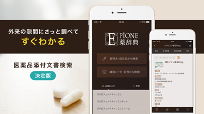 【完全無料の添付文書検索アプリ!】 医師がさっと薬について調べたい時。 そこにいつも添付文書があれば便利なのに、と思ったことはありませんか? EPIONE(エピオネ)薬辞典は 医療用医薬品の添付文書を、剤形カラー写真と薬価つきで閲覧できるアプリです。 収載された添付文書は20,000件以上。 電波の届きにくい院内でも、オフラインで検索できます。 【”すぐ”調べられる】 アプリはクイック起動!2文字目まで入れれば予測変換で検索可能。 覚えにくい成分名での検索も、強力にアシストします。 【識別コード検索+医薬品の剤形写真付き】 在宅や一包化で有用な識別コードからの検索にも対応。 しかも検索した薬は、裸錠・包装画像が両方大きな画像で確認できるので安心です。 【目次機能搭載】 添付文書が確認できるのは安心だけど、その全文を読んでいる時間はない… 忙しい外来の隙間でも大丈夫。 目次機能で「用法用量」や「副作用」にすぐ飛んで、読みたいところだけ確認できます。 【同一成分の先発と後発が一覧で】 多すぎる後発品、増え続ける薬。 そのすべての名前を覚えるのは難しいですよね。 EPIONE薬辞典は先発品から該当する後発品、 またその逆も検索することができます。 写真、薬価付きなので「一番安い薬」「剤形が異なる薬」も探しやすい! 内容は定期更新されますので 毎年分厚い本を買う必要はありません。 場所を選ばない医療の世界に、持ち歩ける添付文書を。 ぜひダウンロードしてください。 -----------ご注意----------- このアプリは薬医療従事者の方向けに開発されたものであり、専門的な情報が含まれています。 一般の方向けではございませんので、ご容赦くださいませ。 アプリに収載されている添付文書の更新は、月に1度程度を予定しています。 本アプリに掲載されているデータは データインデックス株式会社 株式会社薬事日報社 より提供を受けています。