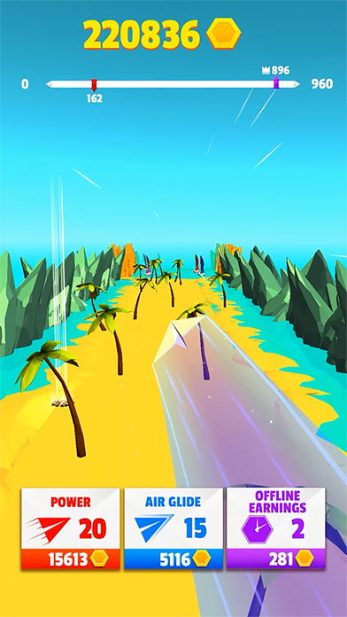 Can you maneuver your paper plane among palm trees and boats? Or rocks, wind mills or even canyon arches? And then fly above fire logs to do barrel rolls! Time your throw perfectly to gain extra speed and fly above all obstacles! How far can you throw and fly your paper plane?
