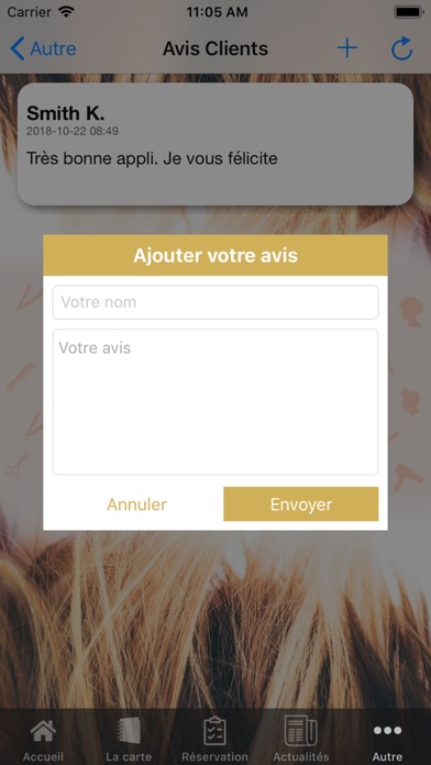 Bienvenue sur l’application Iacom Coiffure: Celui-ci vous permet de: - Consulter notre carte. - Consulter nos prestations. - Réserver l’article / la prestation que vous souhaitez. - Consulter les actualités. - Voir les avis des clients. - Ajouter votre avis. - Recevoir nos dernières offres par le système de notifications. - Être dirigé jusqu’à notre salon (géolocalisation). - Nous contacter en un seul clic.