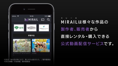 ■MIRAIL(ミレール)とは MIRAIL(ミレール)は、映画、ドラマ、音楽、アニメ、バラエティなど様々な作品の製作者・販売者から直接動画をレンタル/購入できる国内唯一の公式動画配信サービスです。公式直販サービスなので、作品公式サイトから直接作品を購入、簡単にストレスフリーでお楽しみ頂けます。 ■アプリ内課金について ・動画を視聴するにはアプリ内課金にて購入・レンタルをする必要があります。 ・動画の商品毎に異なる価格が設定されています。 (価格例) ・レンタル:160円~ ・購入:1,000円~ ※価格は変動します。 ■アプリ機能について ・映画、ドラマ、アニメを含む多くの作品にアクセスし、動画の購入またはレンタルすることができます。 ・購入した動画はWi-Fiまたはモバイルデータを使って、ストリーミング視聴することができます。 ・「ライブラリ」の再生リストから、視聴が可能な動画の確認をすることができます。 ・「マイページ」の「購入履歴」から、購入した動画の確認をすることができます。 ・「マイページ」から、会員登録、メールアドレス変更、パスワード変更、プロフィール変更をすることができます。 ■利用上の注意 ・本サービスの提供エリアは日本語国内のみとなります。海外からはご利用いただけません。 ・デバイスによっては一部視聴いただけないコンテンツがあります。 Our service is only provided domestically in Japan. Not available from outside Japan. ■利用規約 https://mirail.video/terms ■個人情報保護方針 https://mirail.video/privacy