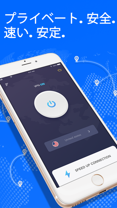 Power VPNは、安全でプライベートなグローバル接続を高速で提供します。オンライン時にデータが暗号化されるので、プライバシーの漏洩を心配する必要はありません。 特徴: -高速プロキシ、無制限の帯域幅、強力な暗号化 -ログインや登録は不要です -ログの追跡またはアップロードはありません -使い方簡単、1タップで接続 -サイバー攻撃を防ぐ強力な暗号化 -無制限の速度、高速インターネット体験をお楽しみください -匿名を維持してプライバシーを保護 VPNアプリが必要な理由とは? サイバー攻撃によってお使いのスマホから個人データを盗まれていても知ることはできません。そこで、IPアドレスを変更して個人データを保護し、オンライン接続時に匿名を維持できるようにするVPNアプリが必要です。 Power VPNを選択する理由とは? Power VPNは、軍用グレードの暗号化形式を使用して、プライバシーセキュリティを確保します。公共のWiFiに接続していても、ハッカーがデータを盗むことを心配する必要はありません。Power VPNを使用すると、完全に安全を保つことができ、匿名。 We offer weekly and monthly auto-renewing subscription options to unlock all premium services in the app. Payment will be charged to your Apple ID account at the confirmation of purchase. Subscription automatically renews unless it is canceled at least 24 hours before the end of the current period. Your account will be charged for renewal within 24 hours prior to the end of the current period. You can manage and cancel your subscriptions by going to your account settings on the App Store after purchase. Any unused portion of a free trial period, if offered, will be forfeited when the user purchases a subscription to that publication, where applicable. Privacy Policy: http://cdn.appcloudbox.net/quickatom/apps/connect/privacy.html Terms of Use: http://cdn.appcloudbox.net/quickatom/apps/connect/terms-of-service.html