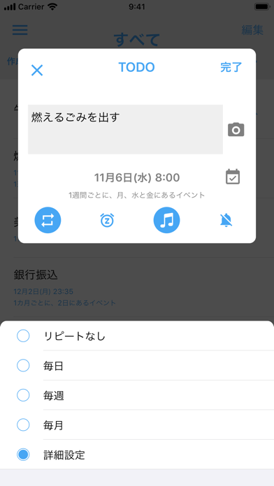以前のアプリより使いやすいため、リピート機能で平日休日を選択できないことが惜しいと感じてしまいます。追加の検討よろしくお願いします