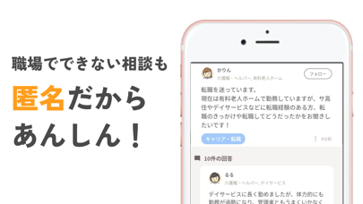 カイゴトークは、介護職の方だけでお悩みの相談などができるコミュニティアプリです。 ◆カイゴトークでできること◆ ・仕事や勉強、キャリアの悩みや質問を相談できるQ&A機能 ・求人を探すことができてスカウトも届く、仕事探し機能 ・みんなの意見がわかる投票機能 など! ●職場の外で同じ介護職の人と話せる! 介護現場で働いている人は、他の職場を知ることが難しい…。 カイゴトークでは、同じ悩みを抱えている仲間と出会い、相談できる! ●今まで気付かなかった自分の仕事の魅力が見つかる! 仕事の愚痴やもやもやをカイゴトークにつぶやいてみよう! 「今日も同じことの繰り返しだった」 「こんな嫌なことがあった」 もしかしたら、あなたとは違う視点から物事をみている人がいるかも?! ●あなたの仕事に自信を持てる! 介護は誰にでもできる仕事?私たちはそう思いません。 介護は「人に寄り添う」専門職です。 より介護の仕事を知ることで、介護の専門性・難しさが分かり、自信を持つことができる! ●アプリを通して、社会を変えることもできる!? あなたの意見が社会を変えるかもしれない…? 私達はカイゴトークで集まった声を多くの人や関係者に届け、介護職がやりがいを持って働ける社会にしていきます! ◆ケアスタッフやケアマネをはじめ、介護職の皆さんにオススメ!◆ ・先輩などに聞きづらい介護やケアのやり方やスキルのことも質問できる! ・同じ職場の同僚に話せない、職場や人間関係、転職・キャリアのことも相談できる! ・同じ年代や似たような職場の人の投稿を参考にできる! ・介護に関する仕事をしている人しかいないから、友達に分かってもらえないことも分かってもらえる! ◆たとえばこんな相談・質問!◆ 【介護・ケア】 ・認知症の入居者さんで暴力行為がある方、どう対応すればよいでしょうか。 ・腰痛対策ってしてますか?どのようなことに注意していますか? 【介護レク】 ・一般的な集団体操以外のレクって皆さんはどうやって調べていますか? ・皆さんの施設では、外出計画などはどうされてますか? 【キャリア・転職】 ・3年たって転職を考えているけど、どういう基準で次を選ぶといいでしょうか? ・◯◯施設の勤務の経験がある方に、転職した後の流れを教えてほしい。 ・施設以外の、訪問などの仕事にも興味があるけど不安も…経験者の方、教えてください。 【職場・人間関係】 ・管理者がパワハラ…どう対応したらいい? ・お局スタッフのせいで新人がすぐにやめてしまう… 【資格・勉強】 ・新しい資格は何が役立つ? ・資格の勉強はどうやってる?いい参考書ってある? 【子育て・家庭】 ・仕事の家庭の両立は? ・産休・育休で休んでいたけどそろそろ復帰したい。 【結婚・恋愛】 ・相手はどうやって探してる? ・結婚したあとの仕事への復帰タイミングは? などなど、いろいろな質問・相談がされています! ちょっとでも気になった方、まずはダウンロードしてみてください! 会社概要:https://www.medley.jp/