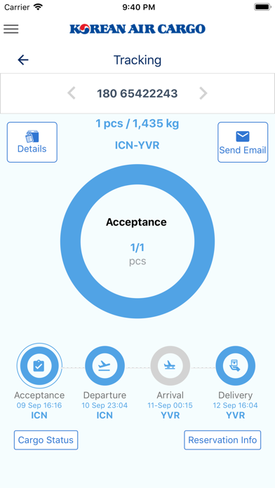 Korean Air Cargo application is designed to enhance your whole cargo experience. One touch solution to access different cargo specific functions like –Booking, My Cargo, Schedule, Tracking and Operations. 1. BOOK AND UPDATE YOUR SHIPMENTS HASSLE FREE A logged in user can make bookings for the schedules listed in Korean Air Cargo application. An already existing booking can also be edited through the Korean Air Cargo application. It also supports Booking List feature which contains the list of bookings made by the user based on flight date. 2. TRACK AND GET REAL TIME UPDATES Tracking feature provides users with information such as status updates from booking till delivery, piece - weight information and flight routing information. Users can also check the Flight level booking status instantly in the Reservation Information section. In addition, logged in users can subscribe for E-mail/SMS notification and view tracking history. 3. SEARCH FOR FLIGHT SCHEDULES This feature enables users to view scheduled flights online and proceed for bookings. Search for Daily Schedule, Weekly Schedule and Flight Operation Status by selecting the Origin and Destination Airports. 4. MY CARGO - A PERSONALIZED DASHBOARD EXPERIENCE FOR USER My Cargo provides the personalized and customized contents associated with a logged in user for better agent engagement and customer experience. In order to fetch new updates, user can use the refresh button. 5. OPERATIONS This feature enables the users to have the customs clearance status result for US bound shipments, EU (European Union) bound shipments, lists down the AWBs which are boarded and offloaded from flights and view the quantity/weight of cargo that has been accepted into the departure terminal for a particular MAWB. Along with accessing the cargo specific functions, users can view different menu items which helps them to understand the details of the different products, various services offered, different terms and associated policies, customer support, cargo business related information etc in Korean Air Cargo application.