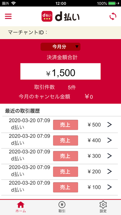 このアプリを使えるのは、クラウドペイへお申込の加盟店様様となります。 d払い加盟店アプリ powered by クラウドペイ で決済管理をもっと便利で簡単に! d払い加盟店アプリ powered by クラウドペイは、加盟店様用の決済管理アプリです。 取引の内容確認や、キャンセルの操作がアプリで簡単にできます。 ■主な機能 売上/キャンセル確認 ー ログインすると、本日などの売上金額を確認することが出来ます。 取引一覧 ー 期間を指定することで、最大1ヶ月分の取引詳細を確認することが出来ます。 キャセル機能 ー 取引詳細画面からキャンセルを行えます。 プッシュ通知 ー 決済完了時にプッシュ通知が配信されます。