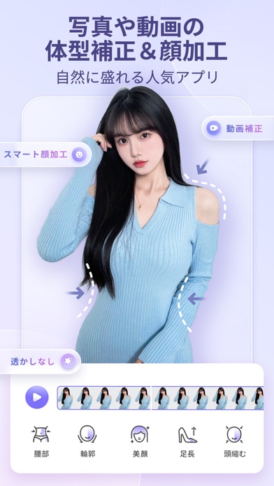 世界中流行ってる美化アプリ。いつでも簡単に顔と体を編集できて、動画素材でも大丈夫! PrettyUpは、素晴らしいボディエディターで写真やビデオをナチュラルに盛れる。自撮り動画と写真のレタッチ、顔パーツ編集、メイクアップ、体型補正、美肌、体顔瘦せ、セルフビデオの編集、vlogの作成、ライブフォトの編集など様々ななことに役立ちます。全力で撮た動画や写真がいまいちで、カメラで顔や体型が変形されるうという問題にまだ困ってますか? prettyupは簡単にナチュラルに盛れて、貴重な瞬間を完璧に仕上げます。 「体型補正 & パーツ微調整」 -ワンタップで体瘦せ、初心者にもできる。 -肩、胸、腰、脚、腕など細かく調整、理想の体型に。体の形を編集するための素晴らしいビデオエディターとレタッチツールが用意されています。 -ボディエンハンサー、スリムして脚長くなる大優勝スタイル 「顔レタッチ & マイクアップ」 -スマート美顔:ワンクリックで小顔になり、ビデオの顔を自然に盛れて、手軽に自撮りが加工できます。 ‐マイクアップ:眉毛、アイメイク、カラーコンタクト、涙袋、チーク、リップなどの機能が含めて、完璧なマイク100%に格上げます。 ‐小顔:りんかく・ほお骨・あごライン・フェイスリフトなど細かく調整できます。eラインを整える横顔美人に!! 顔の形を簡単に編集できます。 ‐美肌:美白、肌磨き、しわ消し、にきびクリックで隠し、透明感のある肌になります。 ‐目:デカ目、キラ目、クマ消しができます ‐鼻、唇、まゆ毛、ヘアカラースタイリングなどを調整できます。 ‐白い歯: ホワイトニングで笑顔に自信を! 「多様性のフィルター & 色調補正」 ‐フィルム風からインスタスタイルまで、おしゃれなエフェクト使って、いろんな雰囲気の写真をすばやく作成する。 -最新流行りのフィルターがあなたのビデオを飾ります。60種類以上のスタイルのフェイスフィルター:Selfie、Ins、Vacation、Retro、Artistic ...さらに多くのselfieフィルターとエフェクトが続々登場!! -豊富な色調整ツール:カーブ、カラーリング、HSL、明るさ、雰囲気、粒子、影、ハイライト、シャドウ、彩度のツールがあるのでぜひ試してみる。 -複数の顔フィルターが魔法の自撮りエディターで試してみる。 「自撮りカメラ & ライブフォト」 -バーストモード使って高速で複数の写真を撮影することができます。 -ライブフォトも加工できで貴重な瞬間を捉えることができます。 -ビューティーフェイスカメラ: すべての顔の問題を修正するのに役立ちます。しわ、アイバッグ、ほうれい線を取り除き、写真やライブフォトビデオで顔を滑らかにし、メイクを明るくし、肌の色を明るくします。 「実用性と面白さを兼ね備えた編集ツール」 -HDレタッチ,動画の解像度を上げられることができます。 -フレーム補間,あなたの映像をより滑らかにする。 -AIリシェイプ:AIがぴったりな筋肉を作って、AIイラストも楽しめます。 たとえ人生が完璧ではなく、些細なことや悩みがどこにでもあるが、落胆しないで、PrettyUpで良い思い出を作って理想の生活を抱きしめてください。なぜならあなたはもともと美しいからです。他人の意見を基準にする必要もなく、焦る必要もありません。世の中の美しさは私たちの違いにある。 【プレミアム会員サービス利用規約】 - VIP に登録すると、毎月更新されるリソースを購読し、すべての VIP 機能のロックを解除できます。 - 選択したサブスクリプション プランに応じて、毎月または毎年請求されます。 1回限りの購入も承っております。 - 購入の確認時に、支払いは iTunes アカウントに請求されます。 - 現在の期間が終了する少なくとも 24 時間前に自動更新をオフにしないと、サブスクリプションが自動的に更新されます。 - 現在の期間が終了する 24 時間以内に、選択したパッケージ (月次または年次パッケージ) に従ってアカウントの更新料金が請求されます。 - サブスクリプションはユーザーが管理でき、購入後にユーザーのアカウント設定に移動することで自動更新をオフにすることができます。 - 有効なサブスクリプション期間中は、現在のサブスクリプションをキャンセルすることはできません。 - 無料試用期間の未使用部分が提供されている場合、ユーザーがそのコンテンツのサブスクリプションを購入すると、その期間は失われます。 サービス利用規約 https://www.floatcamellia.com/agreement.html プライバシーポリシー https://www.floatcamellia.com/privacy_cn.html