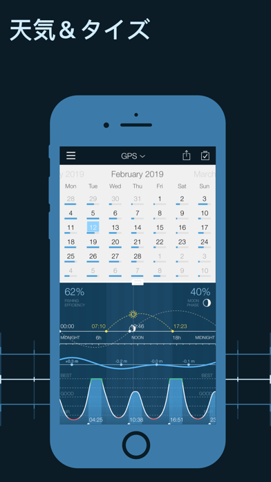 1. 釣りカレンダーは高度なSolunar (太陽と月) 予測カレンダーで、いつでもどの位置が最も良い釣りの時間かを示してくれますすべての釣り師が、魚が最も餌に飛びつきやすい時間帯は通常夕暮れ時か明け方である、ということを知っています。しかし、他にも考慮するべき要素があります。釣りカレンダーの助けがあれば、もっと大きな釣果を上げることができるのです! この強力なアプリケーションにより、釣果の写真を撮影し、説明、サイズ、重さ、天候、餌などを記入することができます。これによりあなたの個人的なデータベースを構築できるのです。友人と釣果の共有もできます! - 価格は$3. 49/月か$18.