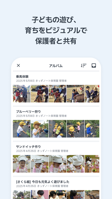 きっずノートは園と保護者をつなぐ連絡アプリです。 きっずノートは世界で最も利用されているサービスです。 きっずノートをご利用いただくことで園と家庭とのコミュニケーションが向上します! 園の先生方、保護者の方の双方に大きなメリットを実感いただけます。 きっずノートご利用者様の声。 ユーザー(2013.10.22) 最高に良いです!息子が昨年から保育園に通っていますが、私はとても心配するタイプなので、ご飯は食べたのか、昼寝はちゃんとしたのか、どう過ごしていたのかなどなど非常に気になっていましたが、きっずノートを使ってから全ての心配が無くなりました!写真のアップロードで何を食べたのか何をしていたのかが分かるようなり、とても良いアプリだと思います。あと、投薬依頼書機能もすごく良いです!こんなアプリがあるって本当にありがたいです。これからももっと良い機能にアップされると良いですね。応援しています!! ユーザー(2013.6.29.) きっずノートは便利です。子ども達と過ごしていると連絡帳に記入する時間も足りないですから。間違ったら修正液で修正し写真もプリントして切って貼り付け(涙)先生達も休む時間もなく申し訳ないなと思ってましたが、きっずノートのおかげで簡単に保護者とコミュニケーションができるようになり、とても嬉しいです。まだ始まったばかりなのでもう少し必要と感じる部分もありますが、開発された担当の方が積極的に利用者の声を聞いて下さるようで私たちの保育園でも信頼して使っています。 ▣ きっずノートを体験してみて下さい。 -園からのお知らせを紙で印刷せずに保護者に伝えることができ、受信確認ができます。 -手書きで作成した連絡帳をスマートなWeb連絡帳のきっずノートに変えてみて下さい。 -連絡帳を通して1対1で相談及び個別通知が可能です。 -もうUSBやCDで子ども達の写真を保護者や祖父母に届けなくても良いのです。 -先生は子どもに接する時間が増え、保護者は職場で子どもの活動を確認できます。 ▣スマートフォンで便利なきっずノート! -いつでもどこでも簡単に連絡帳を作成し送信できるため、園の先生と園長先生の業務量DOWN! -連絡先を公開せずに使えるため、プライバシー保護UP! -連絡張とアルバムから自分の子の園児生活を見られるため、共働きの保護者もご安心! ▣きっずノートはどうすれば始められますか? 1.園長先生がスマートフォン又はPCより会員登録をして下さい。 2.園長先生の会員登録後、先生と保護者を招待して直ぐに使用可能になります。 ▣きっずノートだけの魅力 -園児一人一人の連絡帳の作成時間が大幅に短縮できます。 -連絡帳の既読/未読の状態を確認できます。(先生、管理者) -お知らせが未開封の保護者を確認でき、再通知もできます。(先生、管理者) -きっずノート一つで園のホームページ管理、連絡帳管理、お知らせ管理まで解決できます。 -保護者が海外出張中でも、遠方の祖父母にも、お子さんの連絡帳を確認することができます。 -園の様々なスケジュールを保護者や祖父母にも共有できます。 -写真及び動画の共有が簡単に行うことができます。 -園の先生達の携帯電話番号は公開されません。 ▣ 常にユーザーの皆様と一緒に成長するきっずノート、ご質問やご提案などありましたら、お気軽にご連絡下さい。 -オフィシャルホームページ: www.kidsnote.com -きっずノートサポートセンター: kidsnote@zenpo.jp