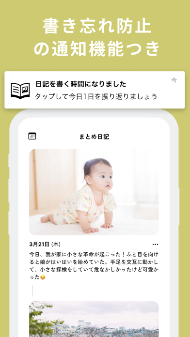 AI日記アプリ「まとめ日記」 日記を書くだけでアプリが日常をまとめてくれる基本無料のシンプルな日記アプリです。 日々の振り返りをしたい、でも自分でまとめたりスクラップを作るのはめんどう..。という方におすすめの日記アプリです!! ▼まとめ日記の特徴 ・日記のまとめ機能 ・バックアップ機能が全自動かつ無料 ・自分だけのタイムライン ・写真が映えるカレンダー表示 ・使いやすいシンプルなUI ・パスコードロックであんしん ・リマインダー機能 ●日記のまとめ機能 日記を書くとAIが要約して週のまとめを自動で送ってくれます 振り返りに便利です ●バックアップ機能が全自動かつ無料 大切な日記データをアプリが自動でバックアップしてくれます。 うっかり手動バックアップをしてなくてデータが消失するような事態を防げます ●自分だけのタイムライン SNS風のシンプルなレイアウトで書いた日記が一覧で並びます。 日記を書いていくとコレクションになります ●写真が映えるカレンダー表示 写真が映えるカレンダー表示で撮った写真を月ごとに振り返ることができます ●使いやすいシンプルなUI シンプルで片手で使いやすいUIにこだわりました ●パスコードロックであんしん 画面ロックのパスコードで人に見られたくない日記の覗き見を防止できます。ロック解除にFace ID / Touch IDもご利用いただけます ●リマインダー機能 寝る前、モーニングルーティンの一部など好きな時間に日記のリマインダー通知を設定できます。 書き忘れ防止にご利用いただけます