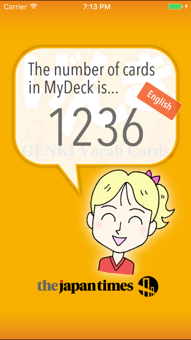 Learn elementary Japanese words at your own pace: GENKI Vocab Cards is a digital vocabulary card app that enables users to learn approximately 1,200 words essential for beginners along with the native pronunciations at their own pace! This is the official iPhone app from GENKI: An Integrated Course in Elementary Japanese, a best-selling series of Japanese learning materials boasting more than 1.2 million copies sold. Advantages ◆Users can view the cards and listen to the recordings as they like, enabling them to study at their own pace. ◆By repeating a process of memorization and self-checking, learners can firmly master important beginning-level vocabulary. ◆Words already memorized are progressively removed from the card deck, so users can concentrate on just the words that challenge them, making for a more efficient approach to learning. Study methods and functions ◇ “MyDeck” allows users to view the cards over and over, so they can take their time learning. ・The words can be studied by working from English to Japanese, or vice-versa. ・Learners can listen to natural pronunciations by native speakers of Japanese. ・Fun illustrations help users to better retain the words studied. ・Each card also includes an example sentence with an English translation and a recording of its pronunciation. ◇ “Check” helps learners to track their mastery. ・Users check their understanding of the vocabulary studied and sort the words into those mastered and those not yet retained. ・Retention can be checked by going from English to Japanese, or vice-versa. ・The cards of words already mastered are taken out of the set, leaving behind just those that still need to be worked on. ◇ “List” displays a list of all words covered by the app so that users can see their progress and review the vocabulary. ・Checkmarks are automatically placed next to words that have been mastered. ・The word cards can be displayed from the list entries, enabling quick review. ・The list can be arranged in any of three orderings: lesson order, a-i-u-e-o order, and alphabetical order. ○This app is based on the vocabulary from the second edition of GENKI. ○Ads: The app does not display any ads that might interfere with learning. -------------------------------------------- 「初級日本語の単語を自分のペースでじっくり覚える」 初級レベルの必修単語・約1200語を ネイティブ発音とともに覚えられる単語カードアプリです。 シリーズ累計120万部を超えるベストセラー教材 『初級日本語 げんき』公式アプリ。 <特長> ◆カードをめくるのも、音声を聞くのも、自分のペースでじっくり学習できます。 ◆「暗記学習」と「定着確認」を繰り返し行うことで、初級単語が確実に身につきます。 ◆覚えていない単語だけが残るので、苦手な単語に集中して効率的に覚えられます。 <学習方法と機能> ◇「My Deck」で、単語カードを何度も見ながら、じっくり覚える ・日本語/英語のどちらの言語からも覚えられます。 ・日本語ネイティブによる自然な発音が聞けます。 ・楽しいイラストが、単語の定着をサポートします。 ・各単語カードには、例文と英訳・音声もついています。 ◇「Check」で、単語の定着を確認する ・覚えた単語、覚えていない単語を自分で振り分けて確認します。 ・日本語–>英語、英語–>日本語のどちらの定着も確認できます。 ・覚えた単語はカードセットからなくなり、覚えていない単語カードだけが残ります。 ◇「List」で、総単語の学習状況がわかり、復習もできる ・覚えた単語には自動的にチェックマークが付きます。 ・単語ごとにカードが見られるので、復習もできます。 ・リストは、課順/50音順/アルファベット順の3通りで見られます。 ○本アプリは、『初級日本語 げんき(第2版)』に準拠しています。 ○広告:学習効果の妨げになる広告は表示されません。