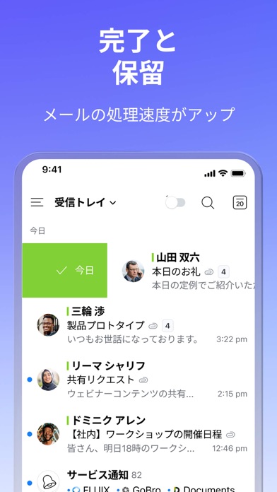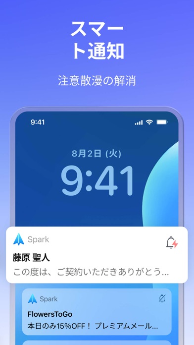 Spark + AIは、個人とチームのための究極のメール体験を提供します。メールをより効率的に管理することができます! 気が散るものを減らすることで、自分の生産性を向上させ、重要なことに集中し、メールをよりよくコントロールできるようになります。複数のメールアカウントを一括管理し、AIメールアシスタントを使用することで、より速く、より的確なメールを作成することができます。Spark + AIによる、最先端のメールコミュニケーションを体験してください。 すべてのメールアカウントを一箇所で管理 Sparkは、複数のメールアドレスを管理するための直感的なインターフェイスを提供します。そのため、Gmail、AOL、Yahoo、Hotmail、iMAP、GMX、iCloudなどのメールアカウントを1か所で利用できます。重要なメールに優先順位をつけて、作業効率を上げましょう。受信トレイを常に管理し、短時間でより多くの仕事をこなせるようにしましょう。 メールをより速く、より良く AIによるメールのクイック返信で、わずか数秒で返信メールを作成できます。Spark + AIのメールアシスタントは、誤字脱字の校正、文法の修正、言い換えを行い、メールのクオリティを向上させます。完璧なメールを一瞬で作成しましょう。 スマートなメール 重要なことに集中し、生産性を高めて、メールのワークフローを効率化しましょう。優先度の高いビジネスメールなどは受信トレイの上部に、メルマガやサービス通知メールは下部にまとめて表示されます。 モダンなチームのためのメール体験 Spark + AIメールは、チームでのコラボレーションを考慮して開発されています。チームメンバーと一緒に受信トレイを管理したり、メールへの返信内容について相談したり、Spark AIアシスタントを使用してプロフェッショナルな返信文を作成したりすることができます。 ▶ 複数のメールアカウントを一元管理 - 1つの受信トレイで複数のメールアカウントをチェック - Gmail、AOL、Yahoo、Hotmail、iMAP、GMX、iCloudなどのアカウントに対応 ▶ AIメールアシスタント - Spark + AIがあなたに代わってメールを作成 - AIによるクイック返信で、わずか数秒で返信を生成 - 誤字脱字の校正、口調の変更、テキスト量の調整など ▶ 重要なメールだけに集中 - 重要なメールは受信トレイの上位に表示 - メルマガとサービス通知は下部にまとめて表示 ▶ ゲートキーパーで不要なメールをブロック - 知らない相手からのメールをスクリーニングし、受信するかどうかを判断 - 不要な送信者は簡単にブロック ▶ 優先する連絡先を指定 - 重要な送信者からのメールは受信トレイの最上部に表示 - 複数のメールを1行にまとめて表示 ▶ 受信トレイを完全にコントロール - 「完了」マークでメールをタスク化 - メールスレッドのミュート - メールの予約送信 - 25MBを超える大きなファイルはSpark Cloudで送信 - Sparkの自然言語検索で必要なメールがすぐに見つかる - タップするだけのクイック返信 - メールへの「いいね」や「承認」 ▶ プライバシーの保護 - 暗号化されたメールの送信 - セキュアなGoogleクラウドでデータを暗号化 - Spark+ AIはGDPRに完全対応 ▶ Sparkチームでコラボレーション - 高度なチーム機能 - 受信トレイの共有、メールの割り当て、返信期限の設定など - リアルタイムエディターで一緒にメールを作成 - プライベートチャットで返信内容をチームに相談 - メールをURLで共有 - チームで使えるメールテンプレート ▶最先端のメール体験 Sparkをダウンロードして、AIによる最先端のメールコミュニケーションをお楽しみください。 利用規約:https://sparkmailapp.com/legal/terms 個人情報保護方針:https://sparkmailapp.com/legal/privacy-app アプリに関するご質問またはお問い合わせはこちら:support@sparkmailapp.com